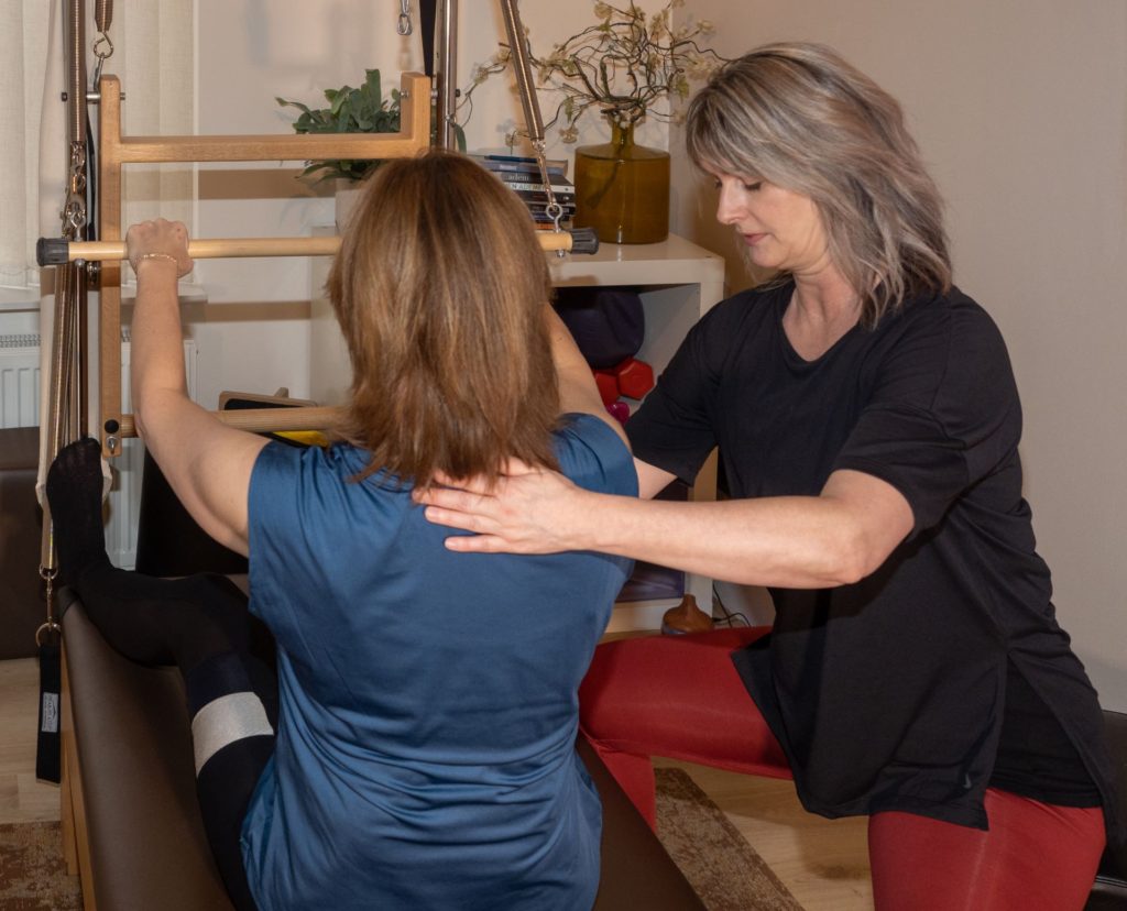 Training op de tower/reformer combinatie. Volledig op maat, en is zeer geschikt voor sporters, revaliderende, zwangerschap of mensen met een beperking in bewegen.